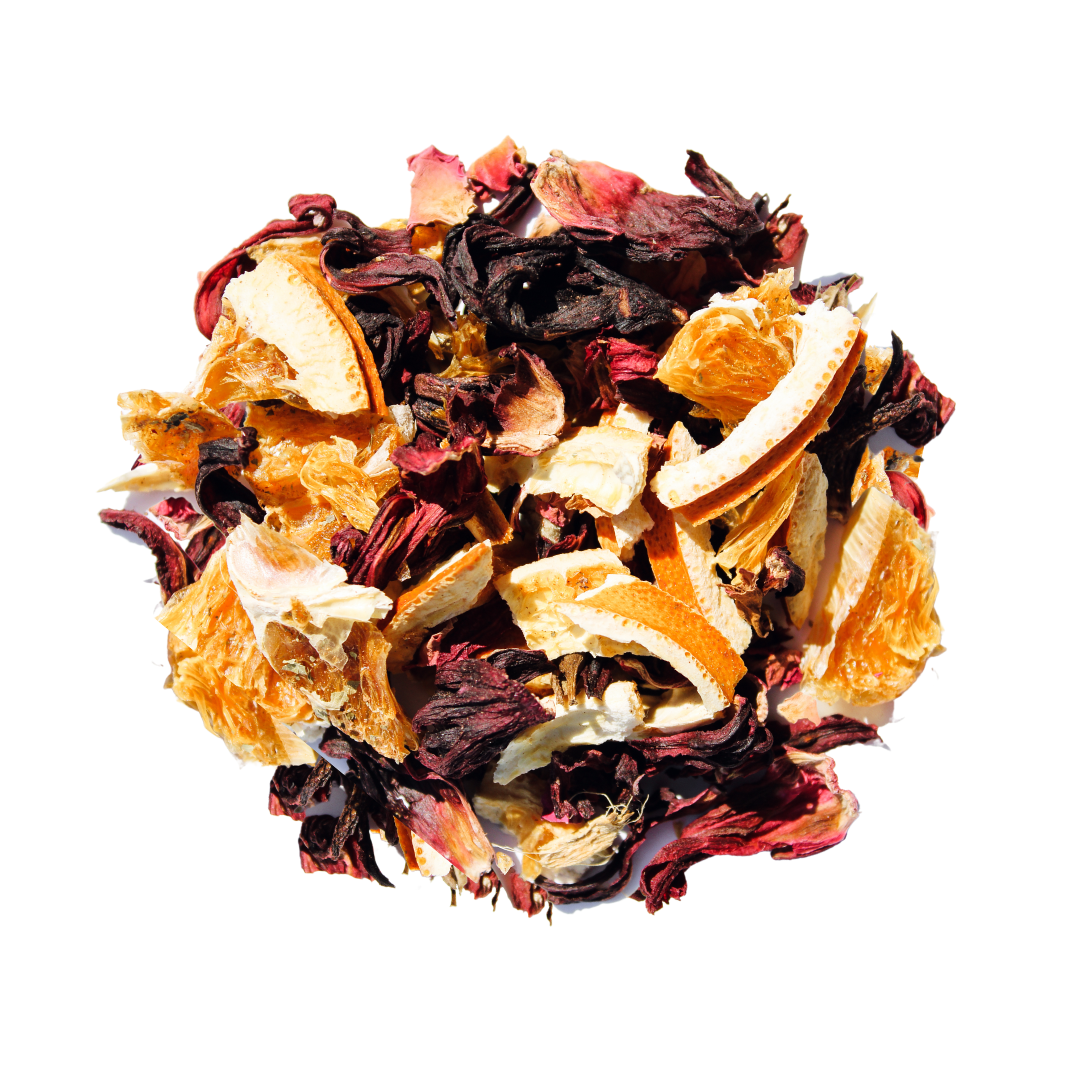 Ingredients: Organic Hibiscus, Organic Rose, Organic Lemon Verbena, Organic Ginger, Organic Cloves, Organic Orange