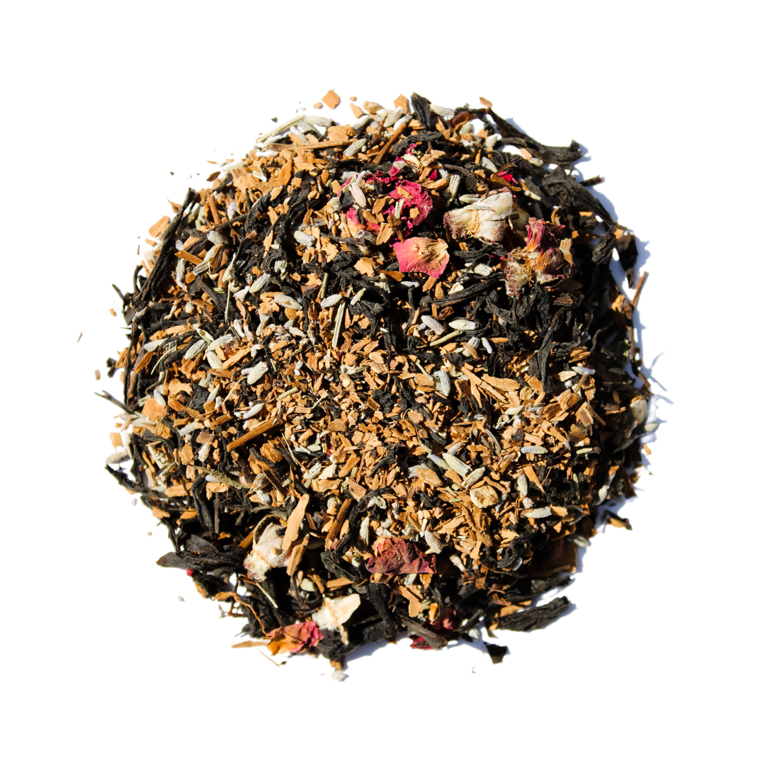 Ingredients: 100% Pure U.S. Grown Magnolia Black Tea, Organic Cinnamon, Organic Rose, Organic Ginger, and Organic Lavender