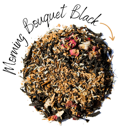 The Morning Bouquet black tea invigorates the air with the sweet smell of a lavender farm wrapped in fresh roses picked from a botanical garden.